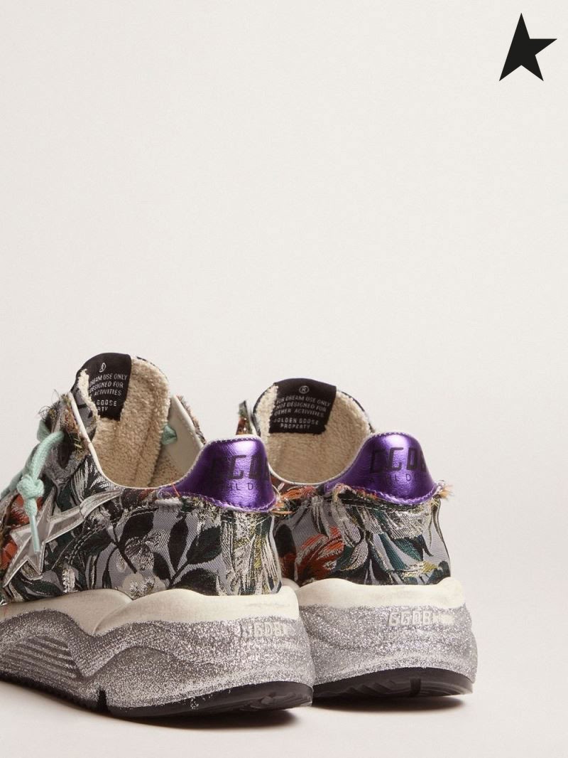 أوزة ذهبية الأحذية وحيد أحذية رياضية مع الأزهار جاكار العليا فضة الأرجواني الأخضر