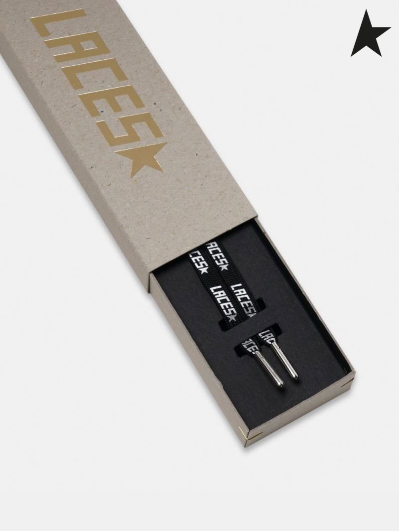 أوزة ذهبية الأسود الأربطة مع الفضة الأربطة طباعة أسود فضي