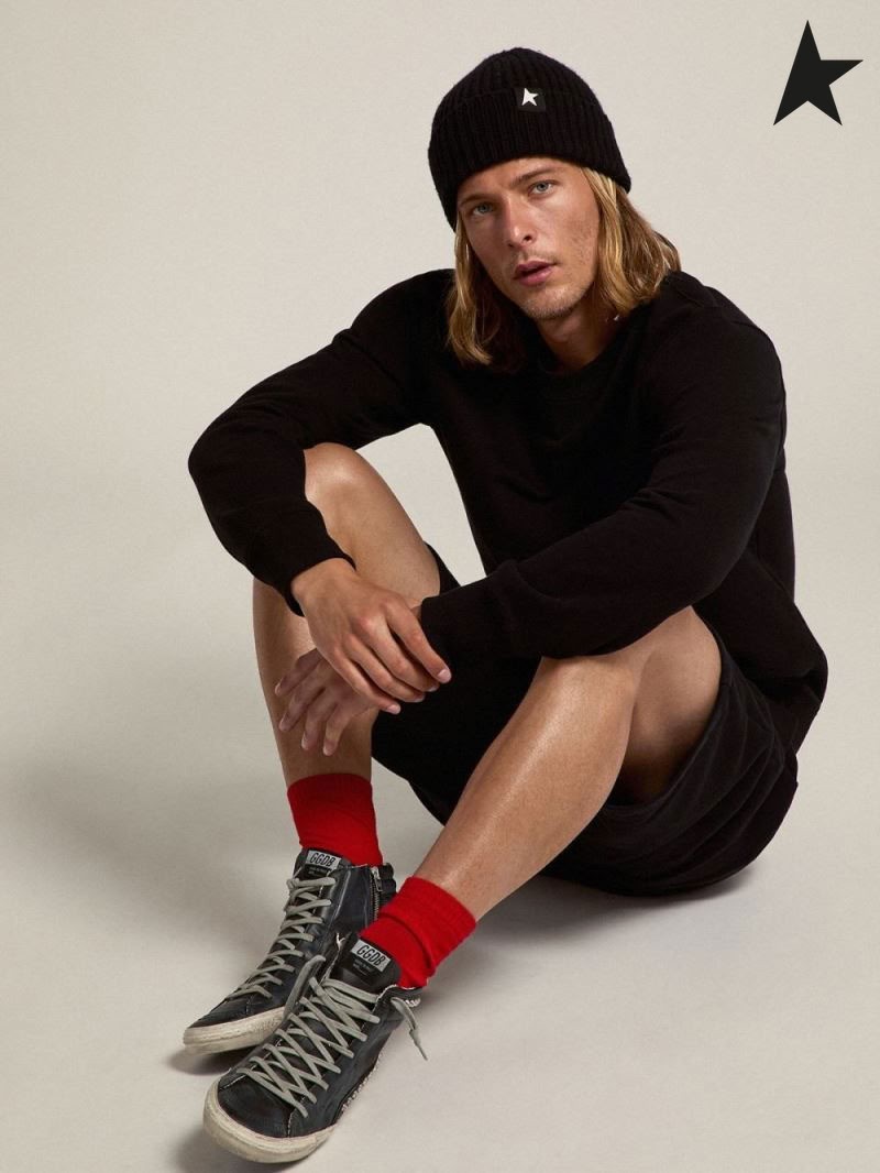 أوزة ذهبية الأسود دييغو نجم جمع شورت برمودا مع لهجة على لهجة نجوم على الجبهة الأسود