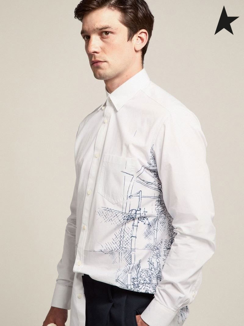 أوزة ذهبية البوبلين رحلة جمع Alvise قميص المتناقضة مع الحبر الأزرق الديكور الأبيض