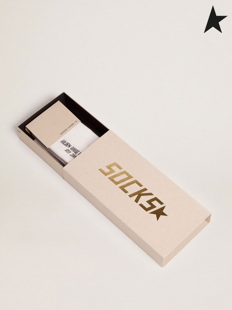 أوزة ذهبية الجوارب البيضاء مع كريستال نجوم على خلفية بيضاء