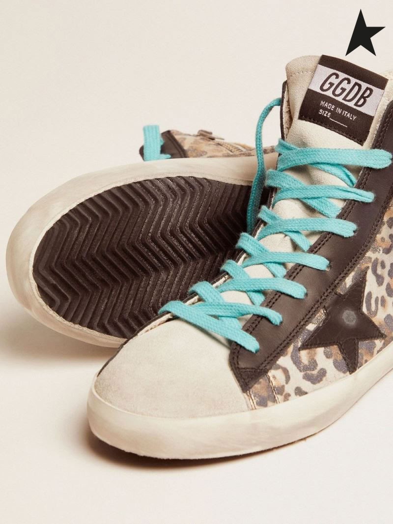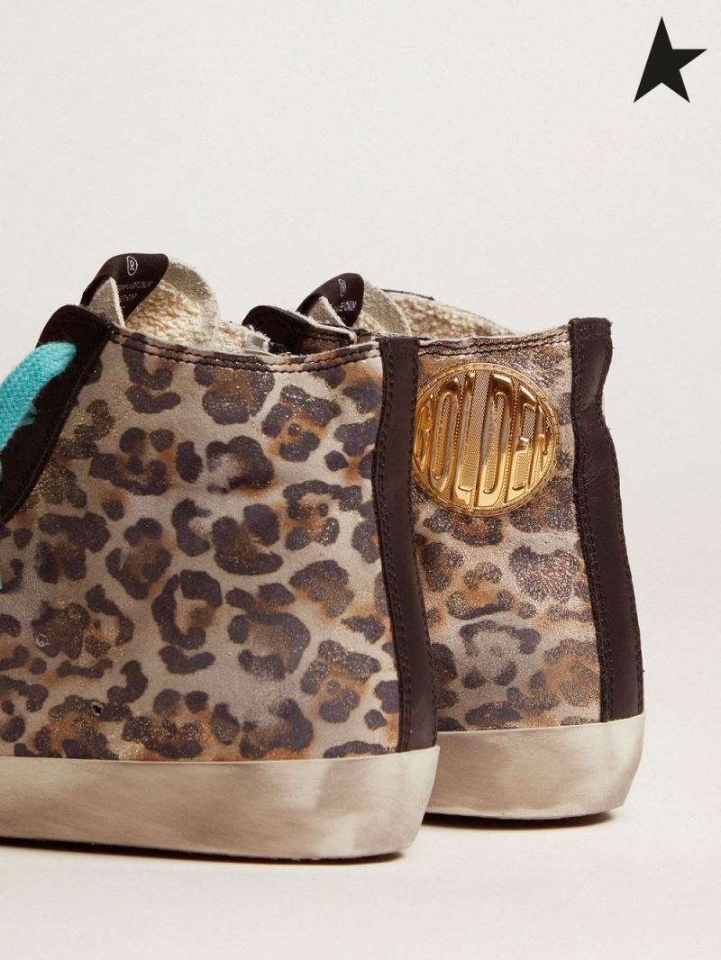 أوزة ذهبية ليوبارد طباعة هكذا أشارت فرانسي أحذية رياضية مع الأزرق الأربطة الفهد الأسود