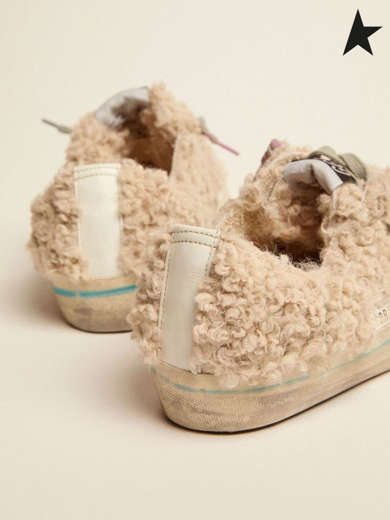 Zlatá Husa Béžová shearling-efekt V-Star LTD tenisky se stříbrnými třpytky star stříbrná bílá šedá