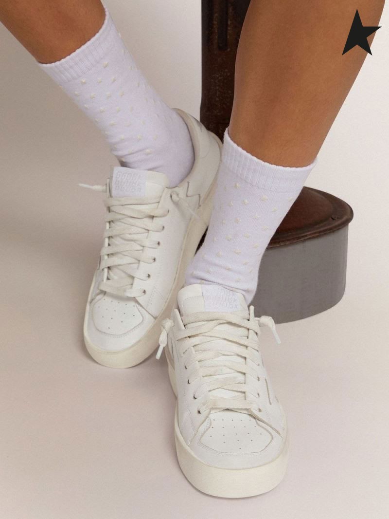 Zlatá Husa Bílá Hvězda kolekce ponožek s kontrastními 3D hvězdy a logo bílé