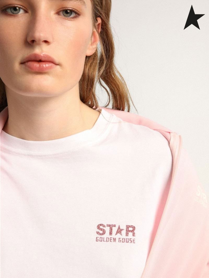 Zlatá Husa Bílá Hvězda kolekce T-shirt s logem a hvězda v růžové glitter bílá