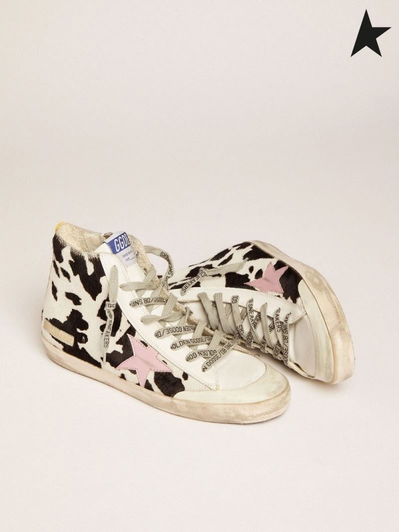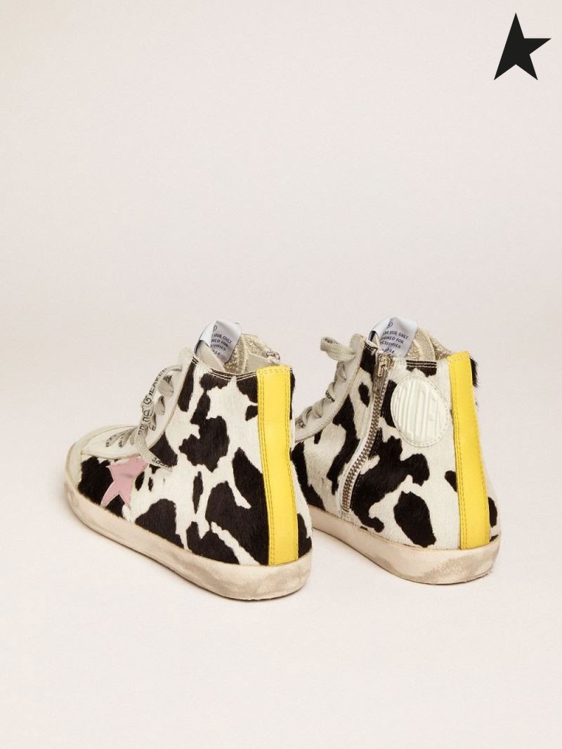 Zlatá Husa Francy Penstar tenisky v cow-print kůže poníka s růžovou-laminované usně star black white