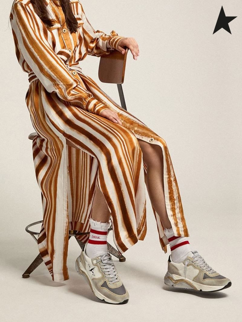 Zlatá Husa Jediným LTD tenisky v bílé barvě snake-print kůže a semiše s mesh vložka