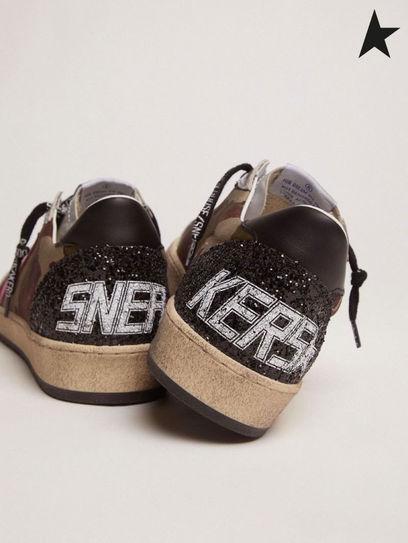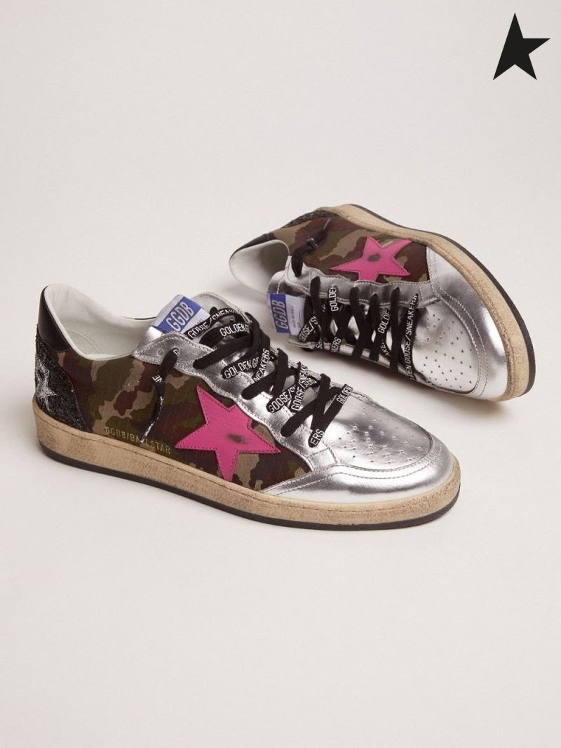 Zlatá Husa Míč Star LTD tenisky s kamufláž tisku a fuchsiová hvězda maskovací fuchsie černá