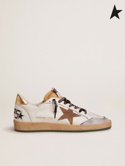 Zlatá Husa Míč Star tenisky s hadím potiskem, semišové hvězda a zlaté vrstvené kůže pata kartu bílá