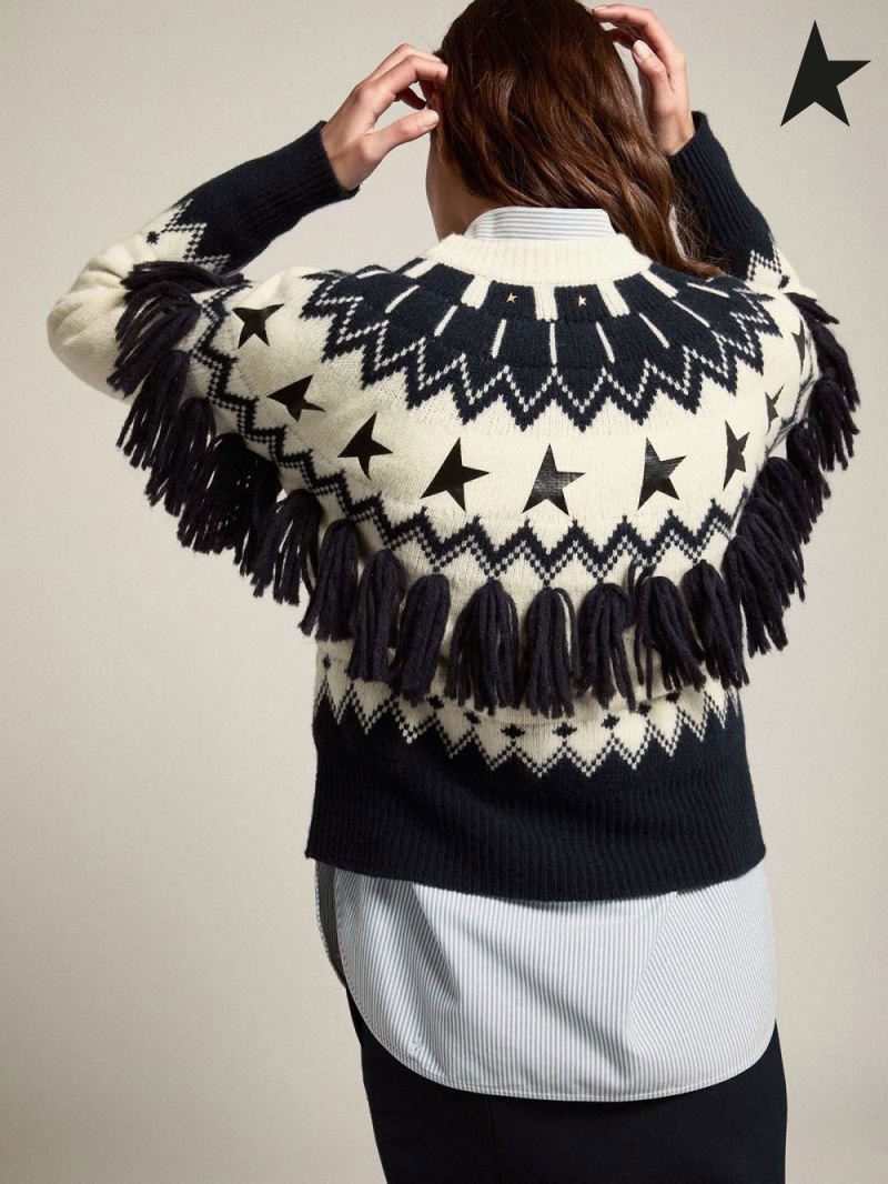 Zlatá Husa Modré a bílé Cesty kolekce Deidra Fair Isle sweater modrá Béžová bílá