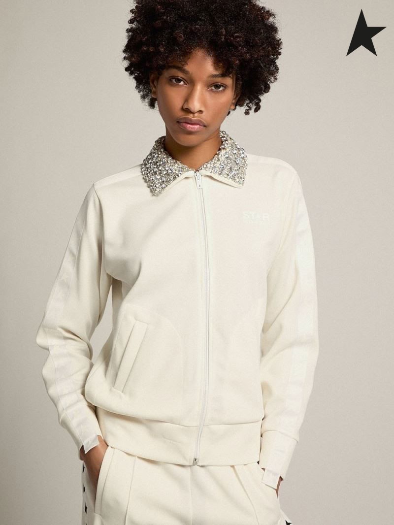 Zlatá Husa Papyrus bílá Denise sbírky Star zip, mikina s crystal obojek bílá