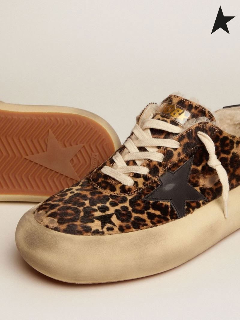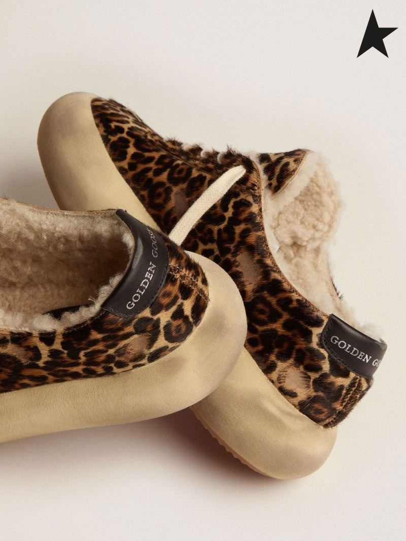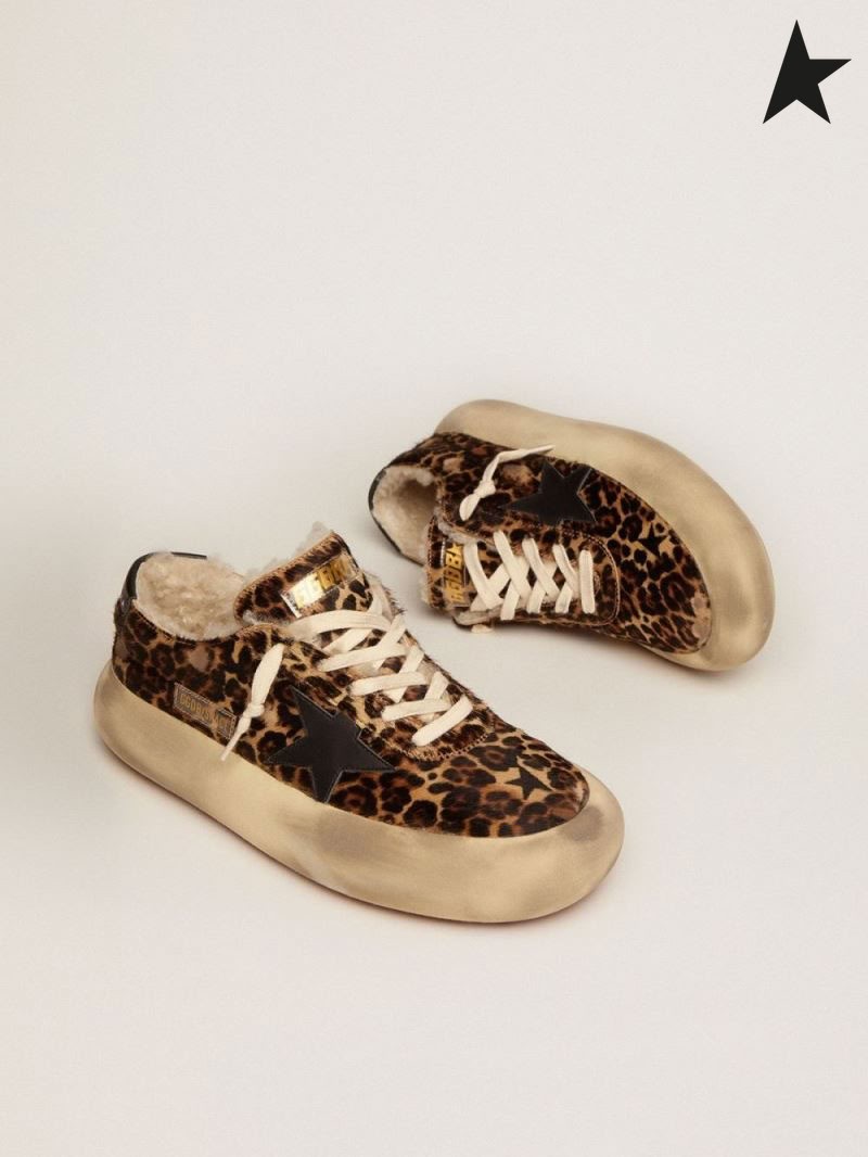 Zlatá Husa Prostor-Hvězdičkový tenisky v animal-print pony kůže s shearling podšívka černá