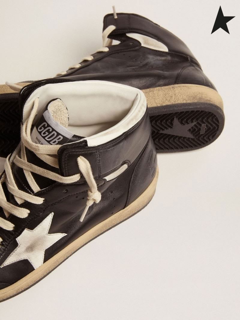 Zlatá Husa Sky-Hvězdičkový tenisky v černé kůži nappa s bílou nappa-kůže hvězdičkový černá bílá červená krémová