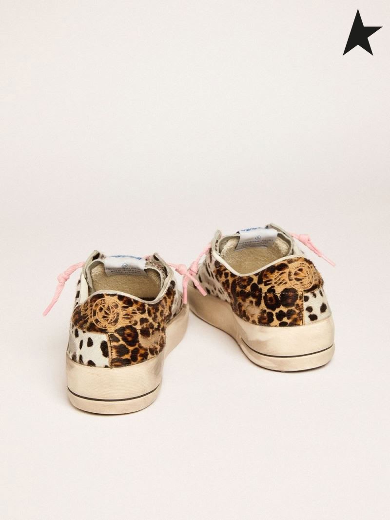 Zlatá Husa Stardan tenisky v polka-dot pony kůže s leopard-print pony kůže hvězda bílá černá