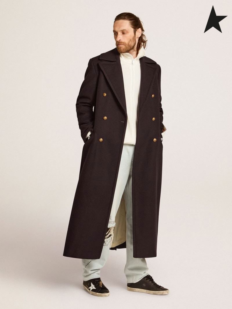 Zlatá Husa Zlatá kolekce double-breasted kabát v tmavě modré vlny s zlaté barvy heraldické knoflíky tmavě modrá