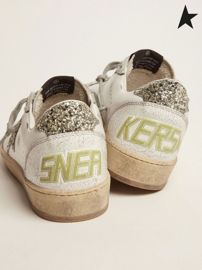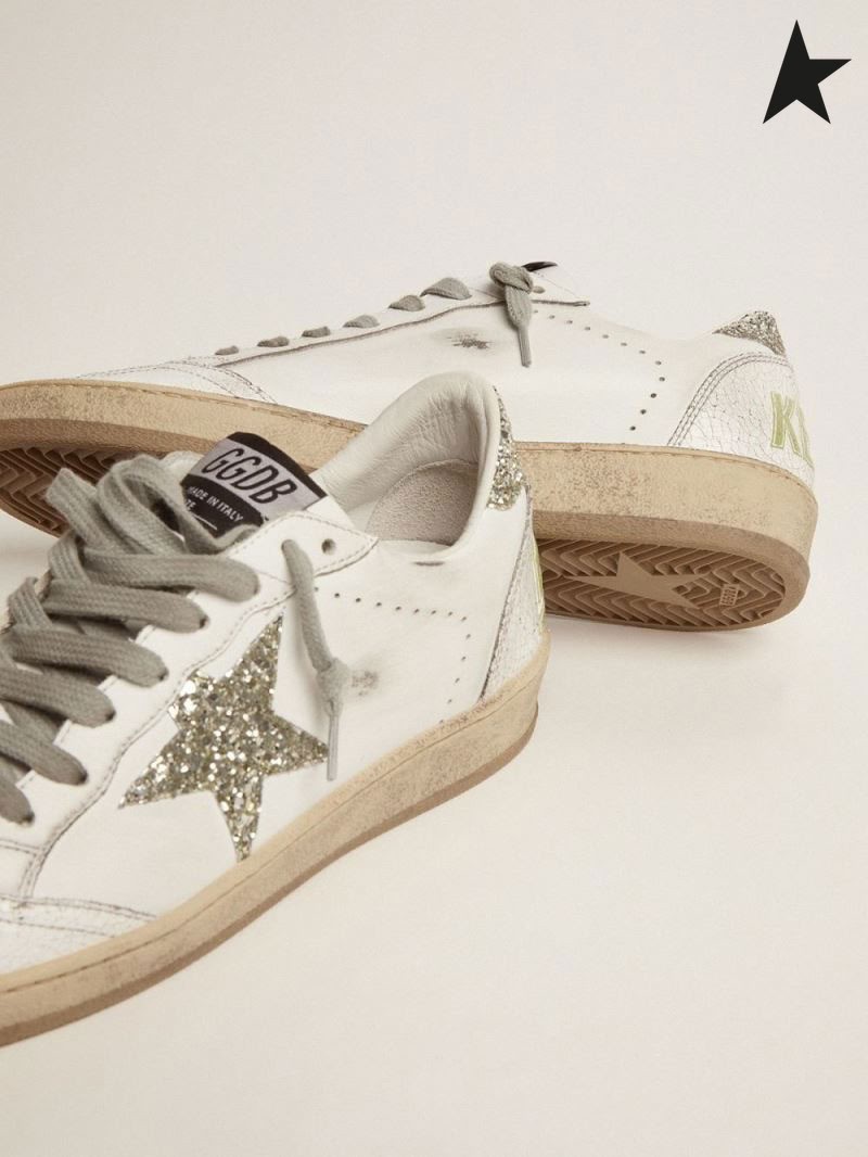 Golden Goose Bolden Star LTD sneakers i hvid læder med lys grøn glitter hvid