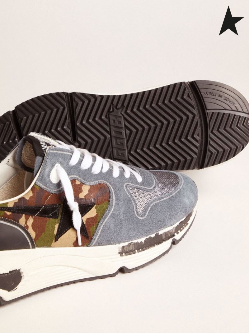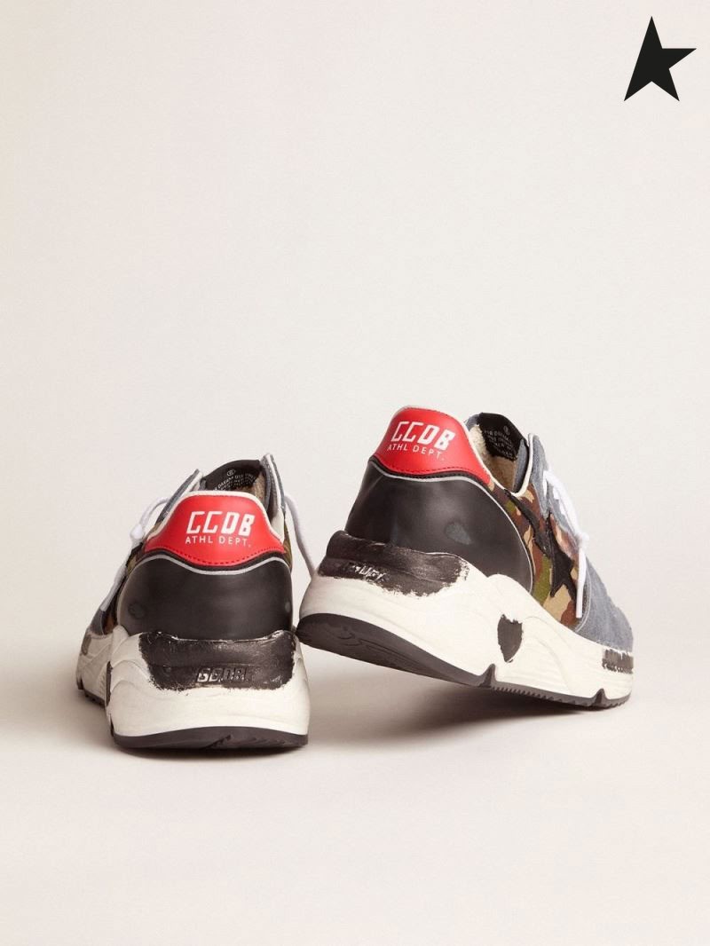 Golden Goose Camouflage løbesko Eneste sneakers med teksturerede nylon indsætte og rød hæl fanen sort camouflage