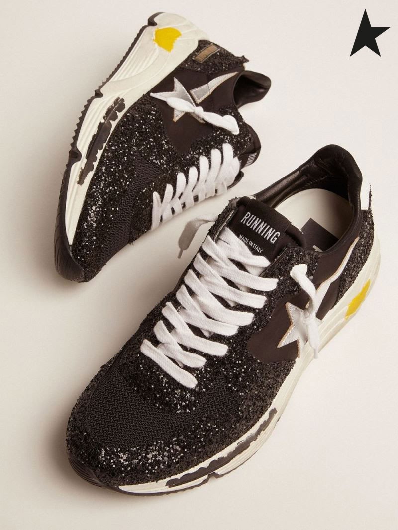 Golden Goose løbesko Eneste sneakers i sort nylon og glitter med sølv lamineret læder star sort