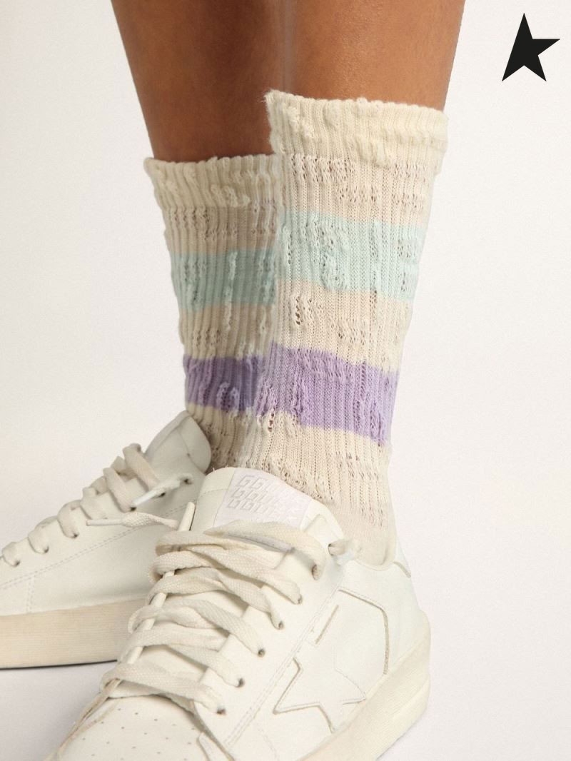 Golden Goose Nødlidende-finish hvide sokker med lilla og baby blå striber hvid