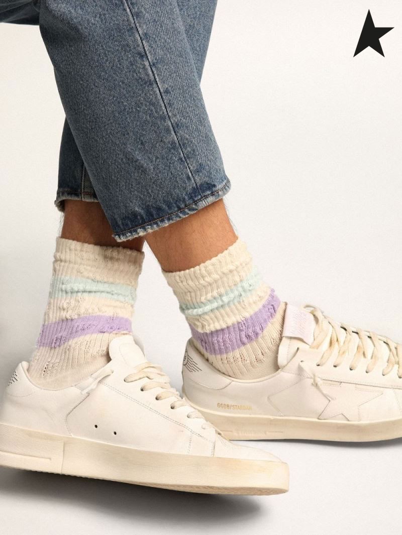 Golden Goose Nødlidende-finish hvide sokker med lilla og baby blå striber hvid