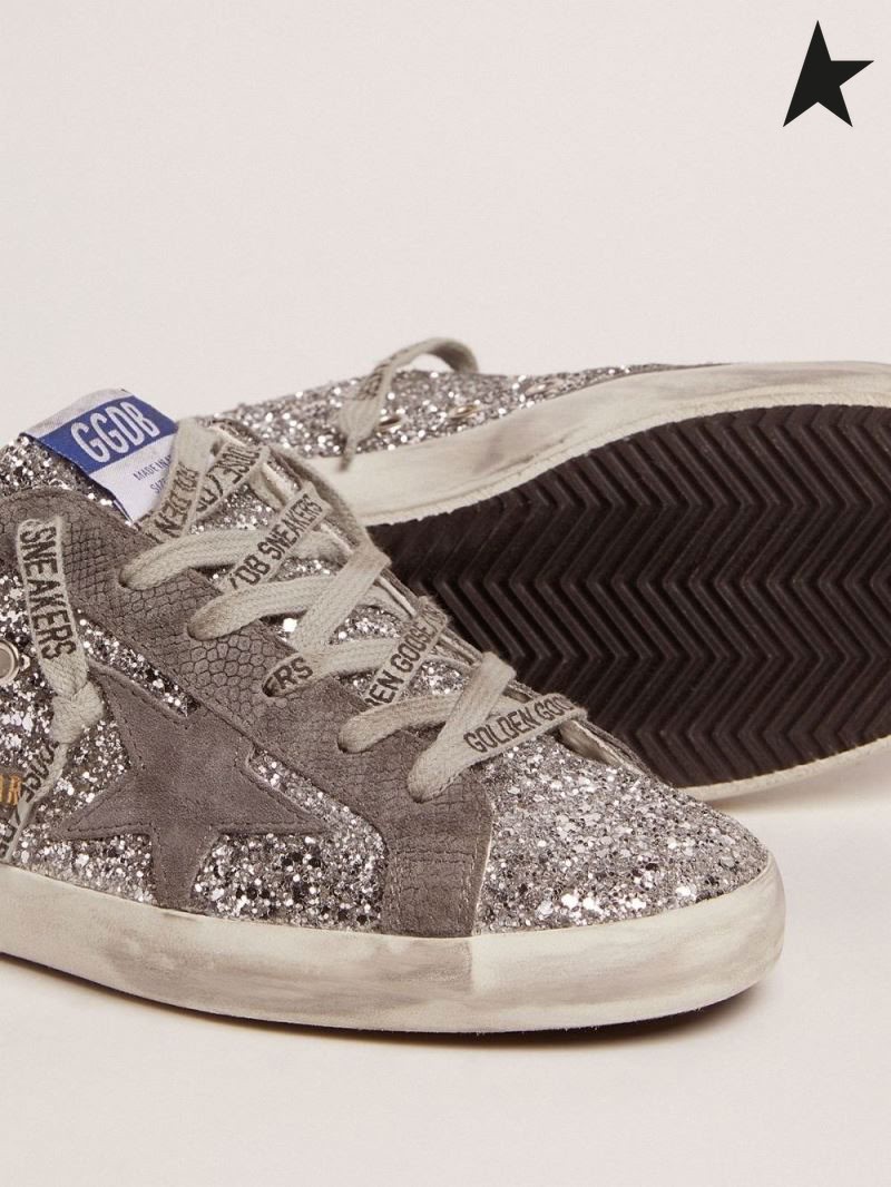 Golden Goose Super-Star sneakers i sølv glitter og mørk grå ruskind sølv