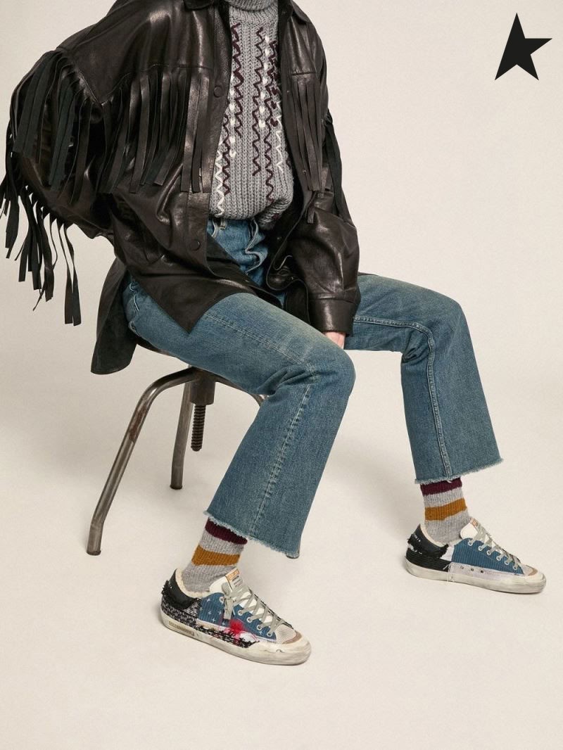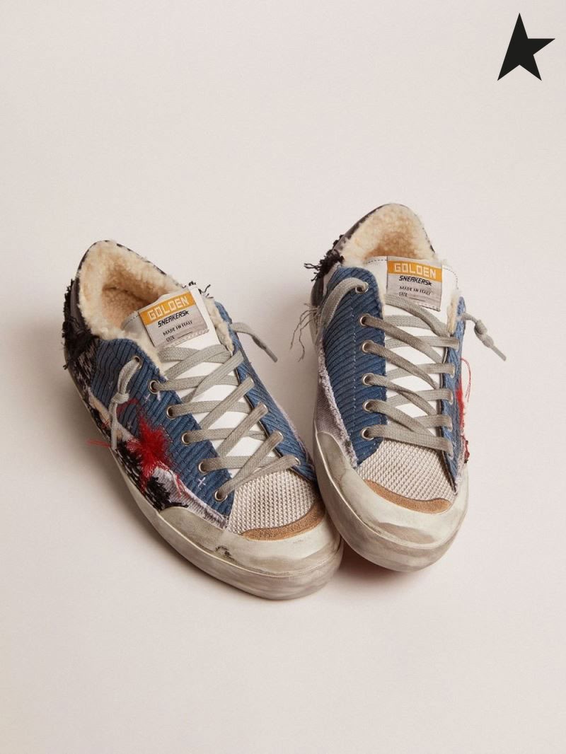 Golden Goose Super-Stjernede Penstar LAB gummisko med kanvas og fløjl patchwork og shearling foring lilla rød grå