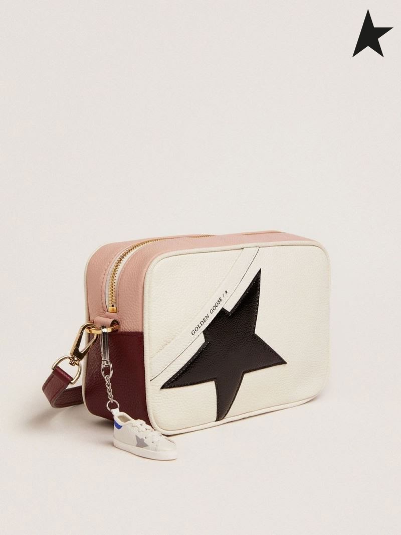 Golden Goose White and pink Star Bag with black patent leather star white pink