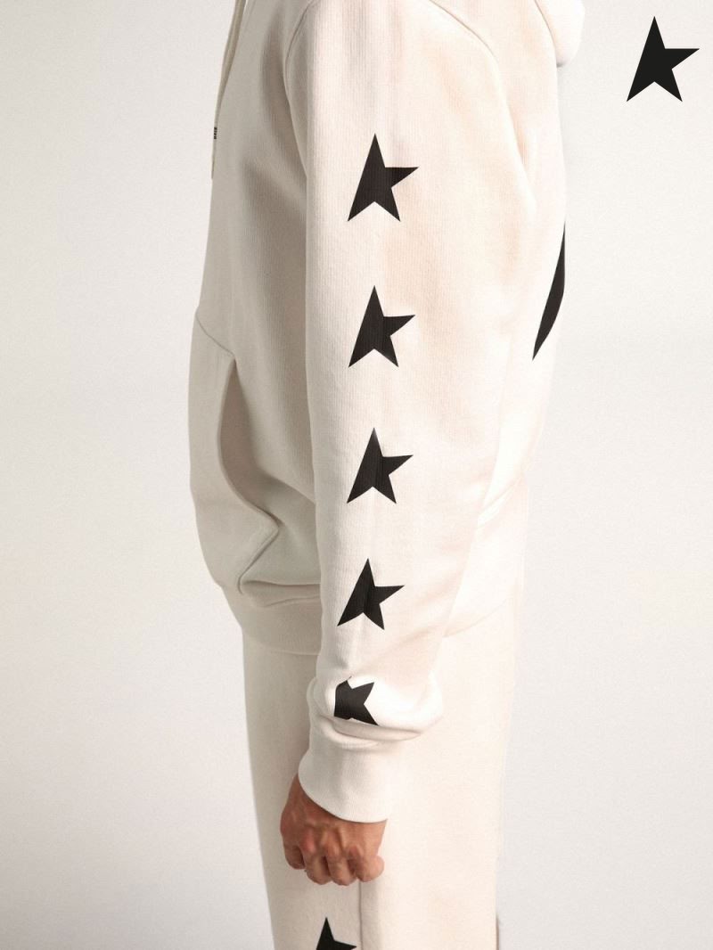 Golden Goose Alighiero Star collection hooded sweatshirt in vintage weiß mit kontrastierenden schwarz-weißen Sternen