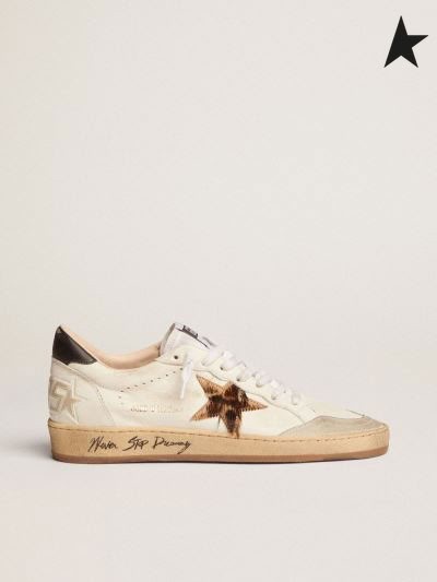 Golden Goose Ball Star sneakers with leopard-print pony skin Sterne und schwarze Leder-Ferse-Registerkarte weiß beige Braun leopard