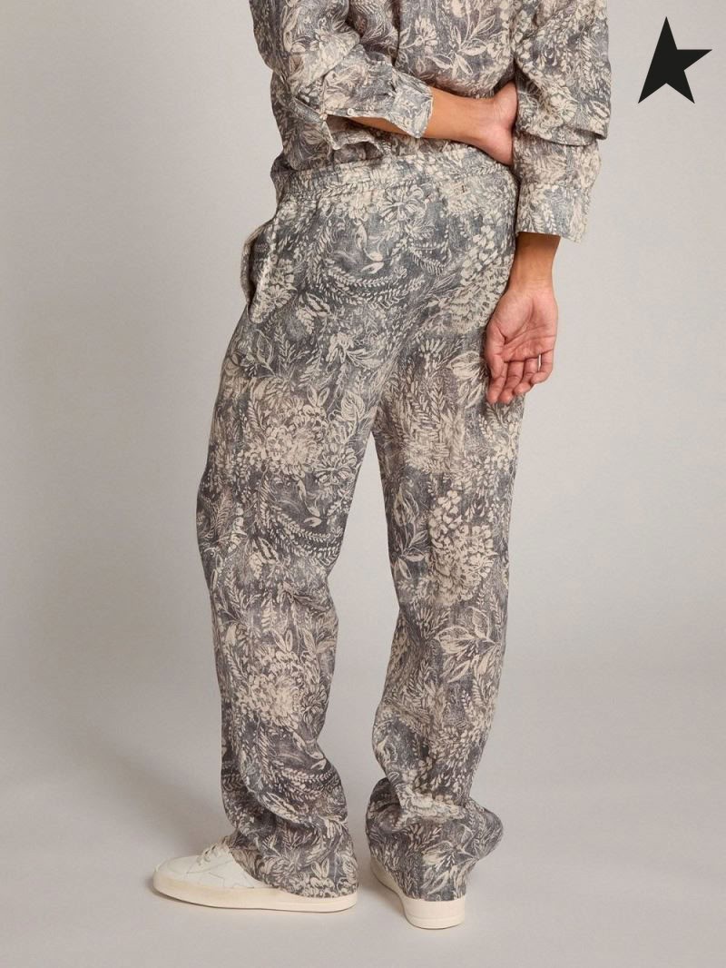 Golden Goose Evan Golden Resort Capsule-Kollektion Leinen-Hose in vintage blau mit kontrastierenden weißen toile de jouy print-blue