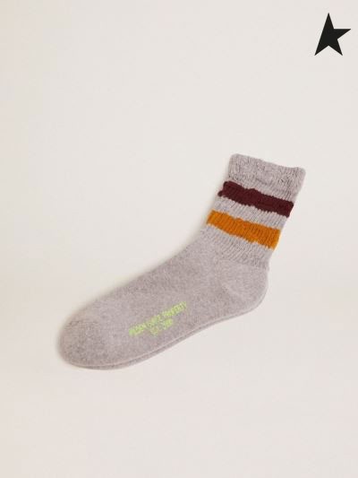 Golden Goose Melange Grau Socken mit distressed-details und zwei-Ton-Streifen Braun Burgund gelb