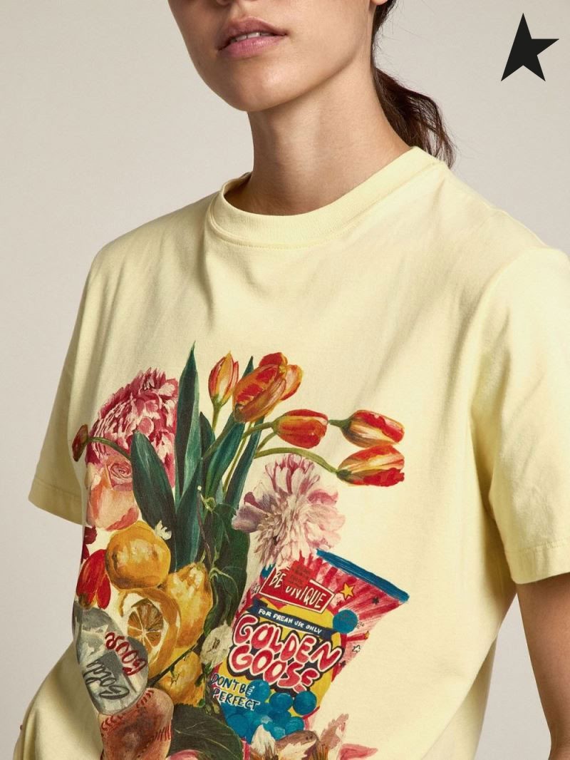 Golden Goose Pastell gelb Reise collection T-shirt mit bunter collage-Stil-print-gelb