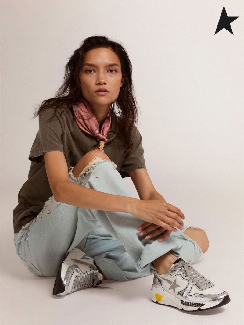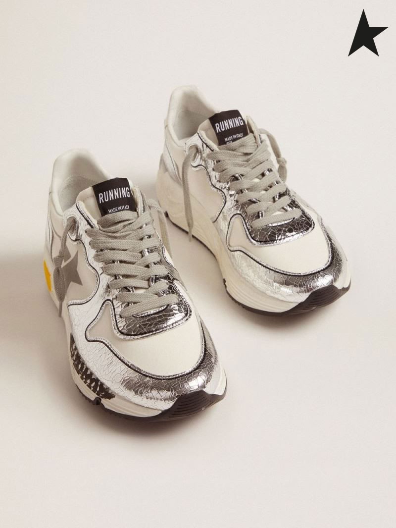 Golden Goose Silber und weiß Running Schuhe Sohle Sneaker Braun