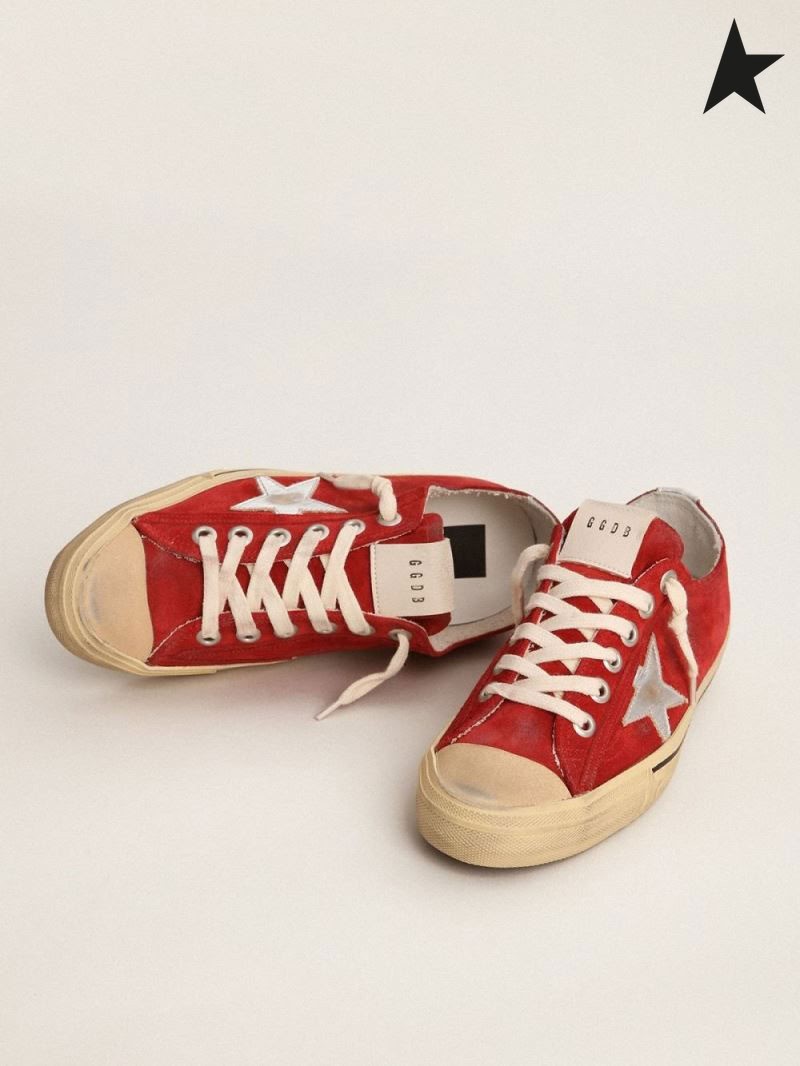Golden Goose V-Star LTD sneakers in dark red Wildleder mit Silber-metallic-Leder-Stern-dunkel-rot-Silber