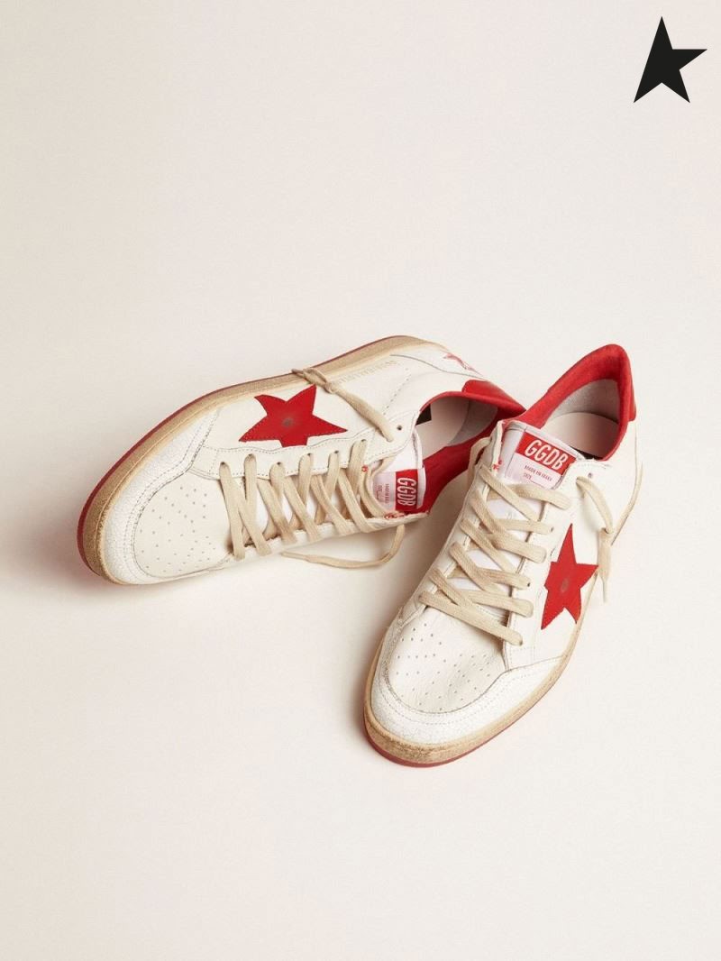 Golden Goose White Ball Star sneakers in leather with red star and heel tab weiß