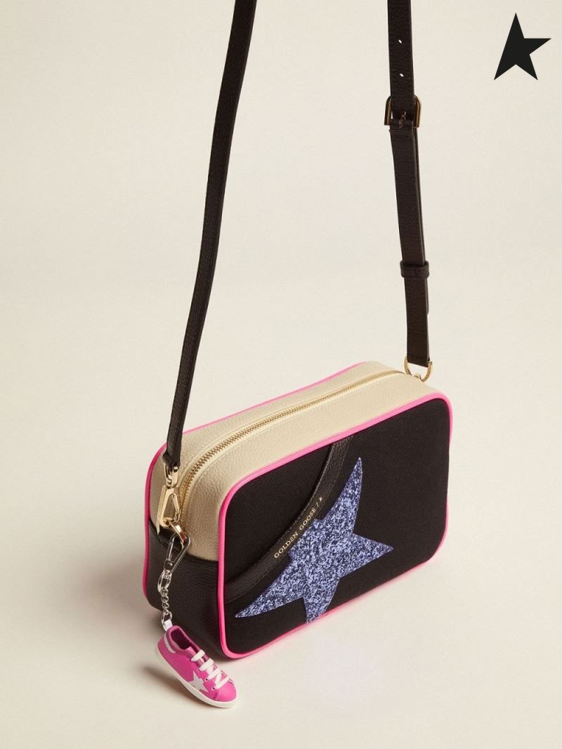 Golden Goose Αστέρων Τσάντα καμβά με ένθετα σε λευκό γάλα σφυρήλατο δέρματος και μοβ λάμψη αστέρων, λευκό κόκκινο πορφυρό