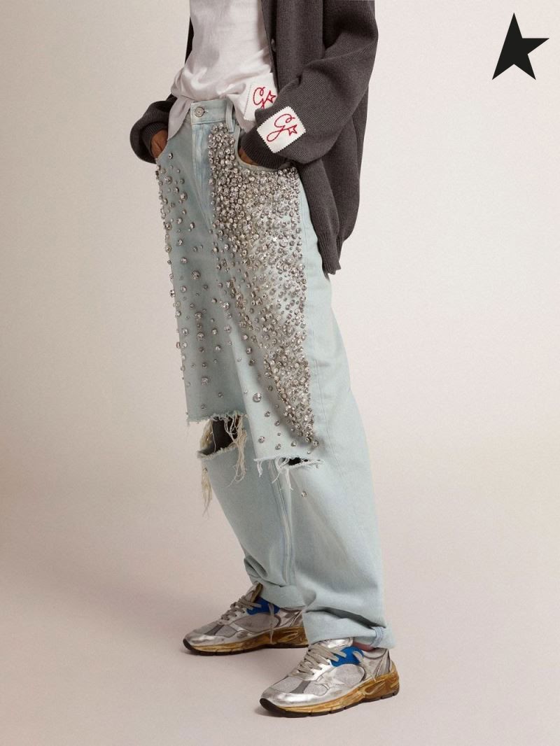 Golden Goose Χρυσή συλλογή λευκασμένα Κιμ τζιν με cabochon κρύσταλλα μπλε