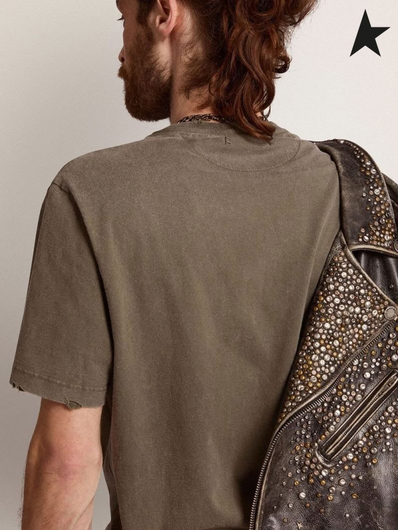 Golden Goose Χρυσή συλλογή T-shirt σε πράσινο της ελιάς με επείγουσα θεραπεία πράσινο της Ελιάς