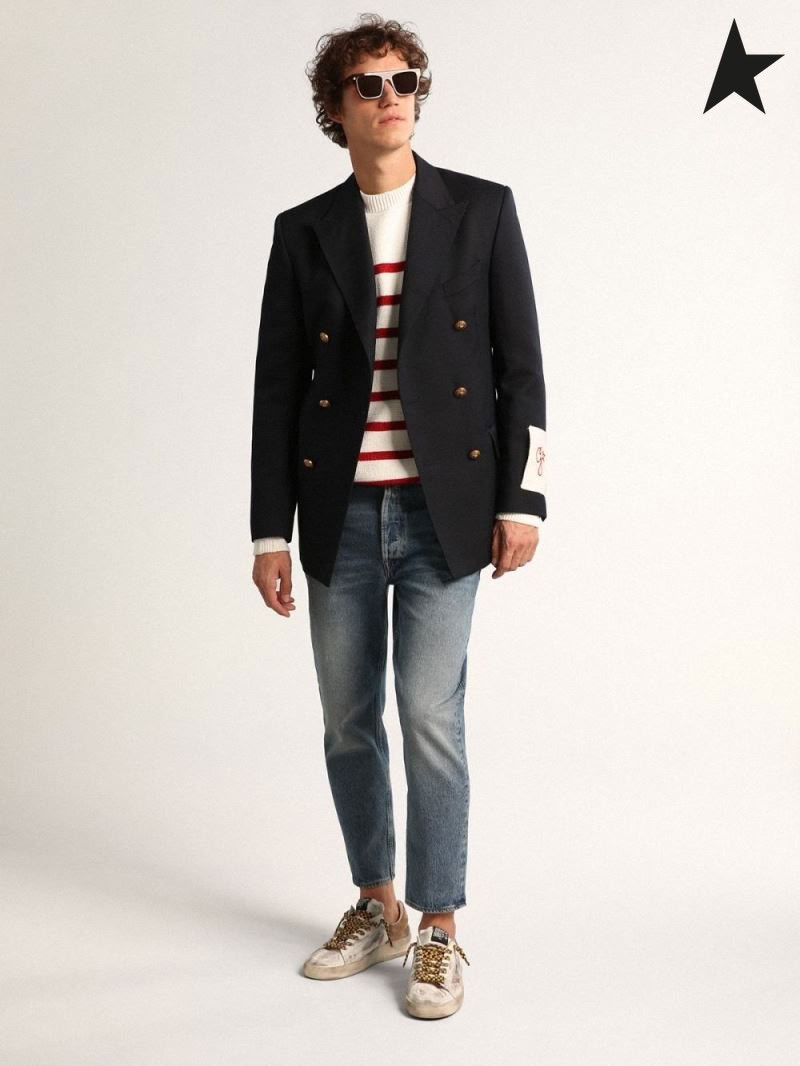 Golden Goose Λευκό βαμβακερό Ταξίδι συλλογή πουλόβερ με κόκκινες ρίγες και γράμματα στο μπροστινό λευκό