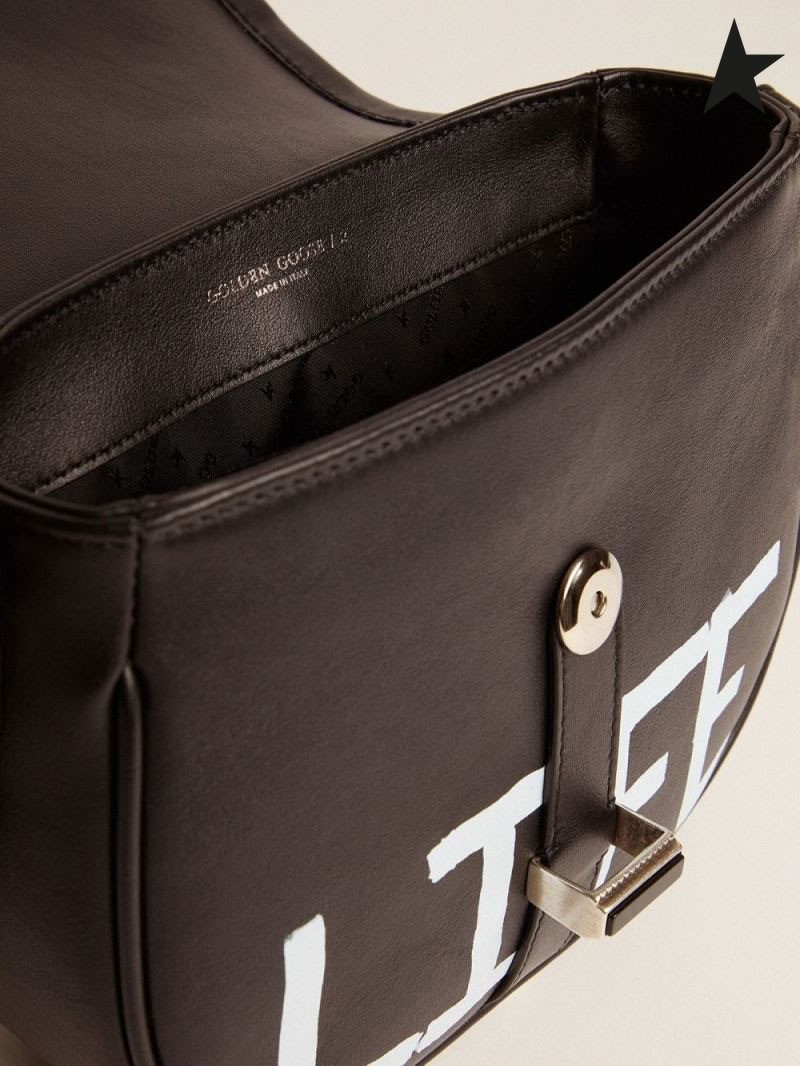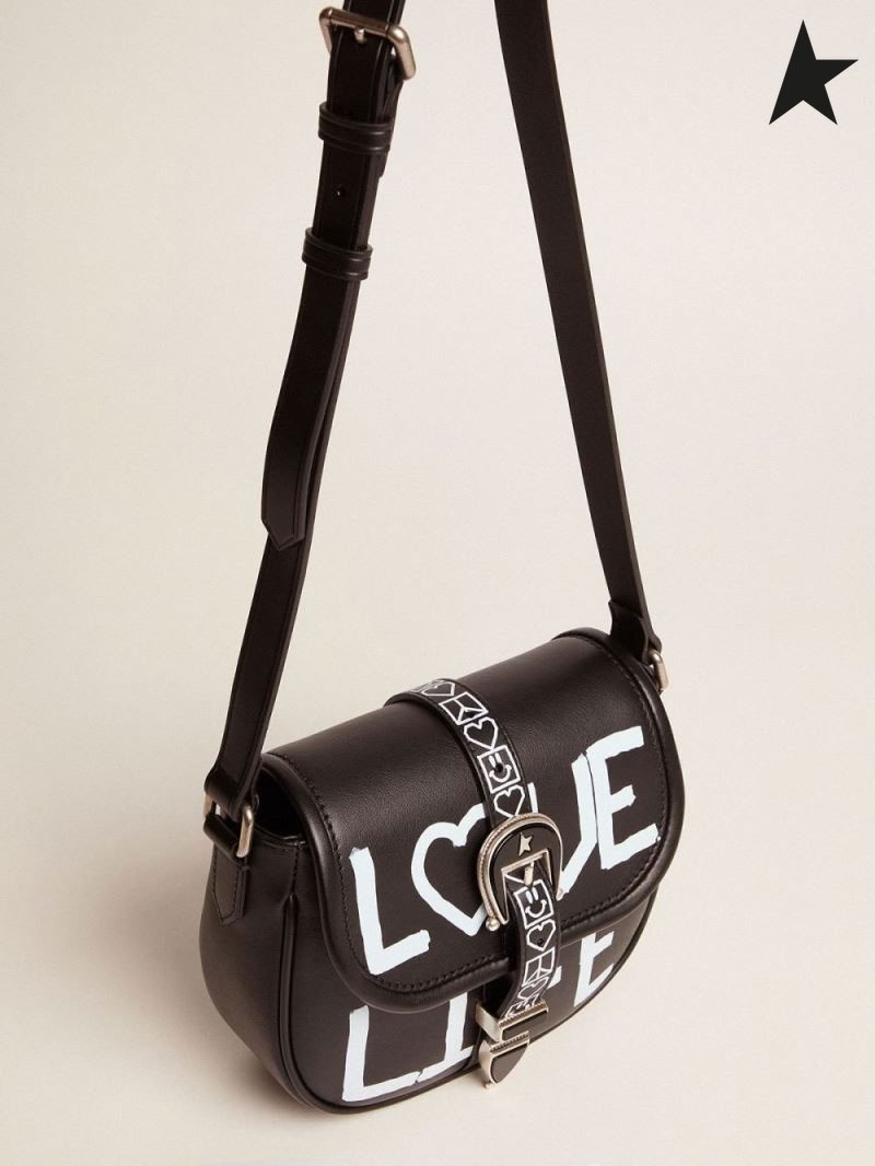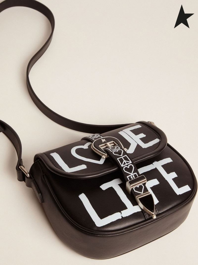 Golden Goose Μικρό μαύρο δέρμα Ροντέο Τσάντα με το "Love Life" οθόνη εκτύπωσης μαύρο
