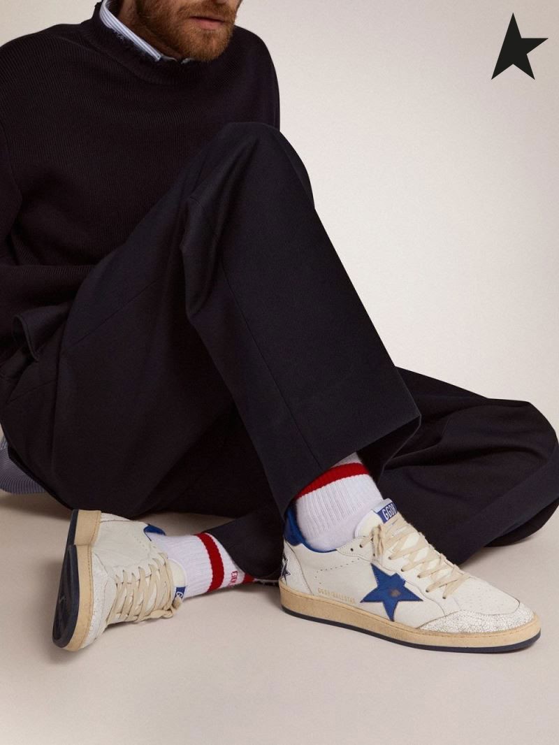 Golden Goose Μπάλα Αστέρι πάνινα παπούτσια σε άσπρο δέρμα nappa με το φως μπλε τοποθετημένες σε στρώματα δέρματος αστέρων και τακούνι καρτέλα λευκό φως μπλε