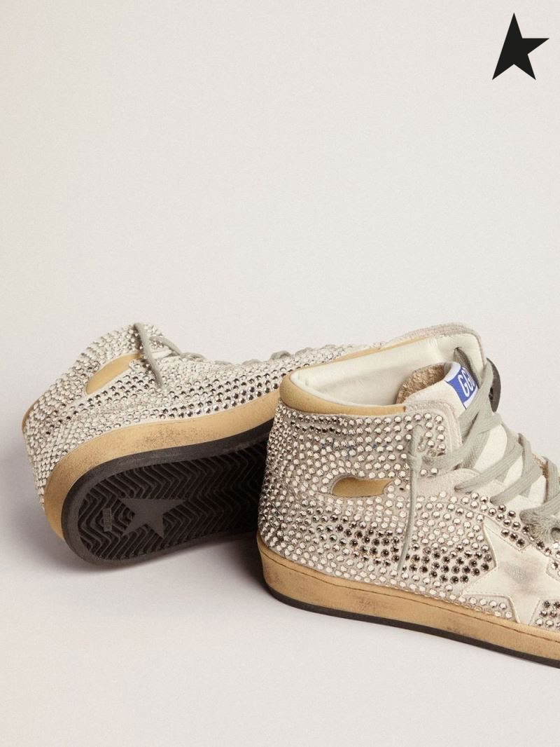 Golden Goose Ουρανό-Star αθλητικά παπούτσια στο οπτικό άσπρο σουέτ με κρύσταλλα και λευκό δέρμα nappa αστέρι λευκό κόκκινο ασήμι