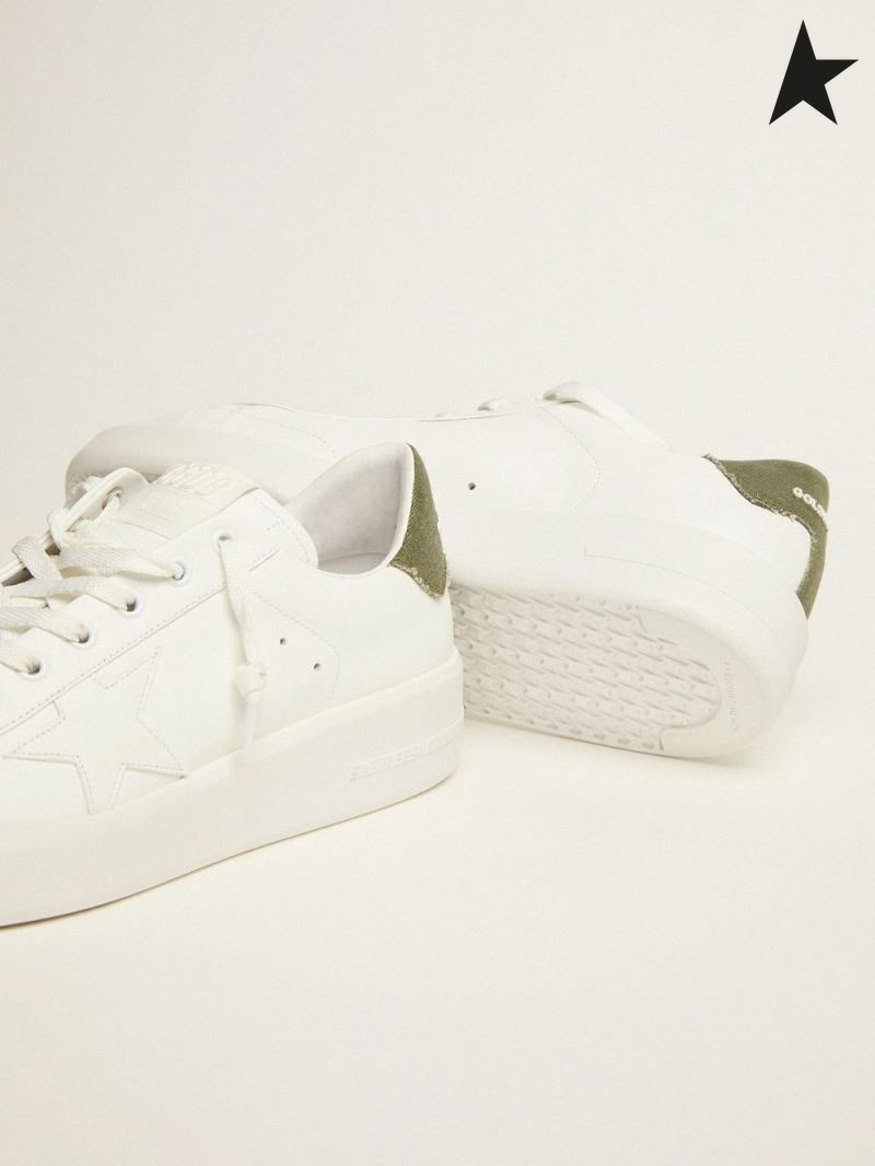 Golden Goose Purestar πάνινα παπούτσια σε άσπρο δέρμα με πράσινο καμβά τακούνι καρτέλα λευκό
