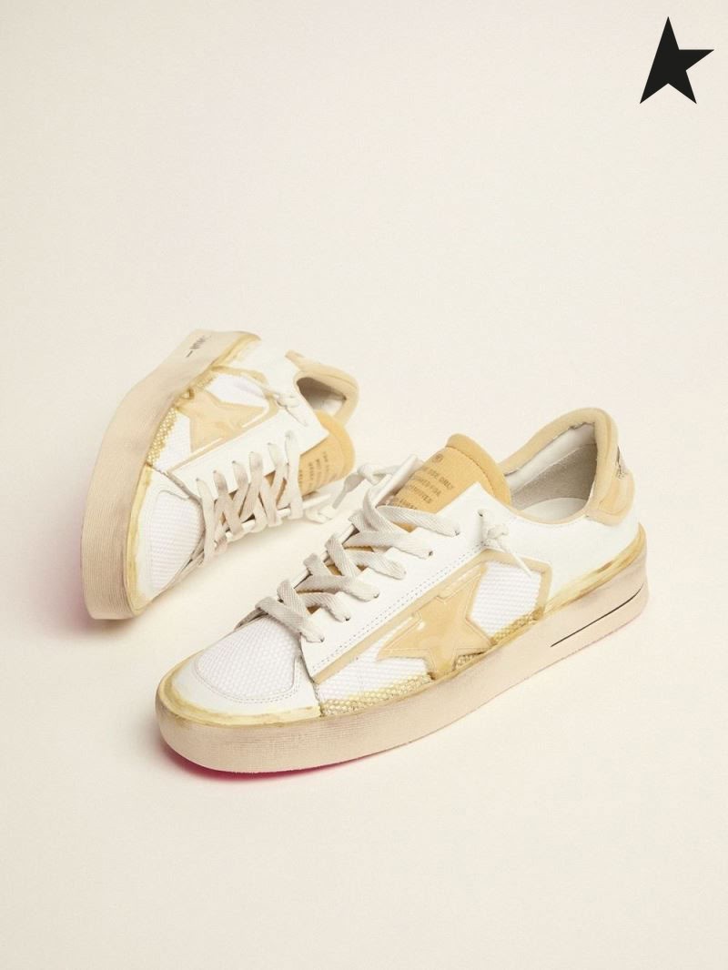 Golden Goose Stardan ΕΡΓΑΣΤΉΡΙΟ πάνινα παπούτσια σε άσπρο δέρματος με τον αφρό PVC και ένθετα λευκό κίτρινο