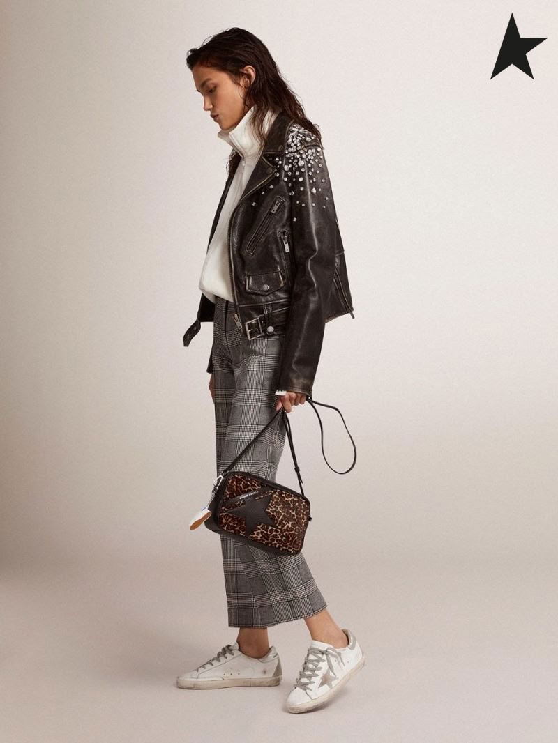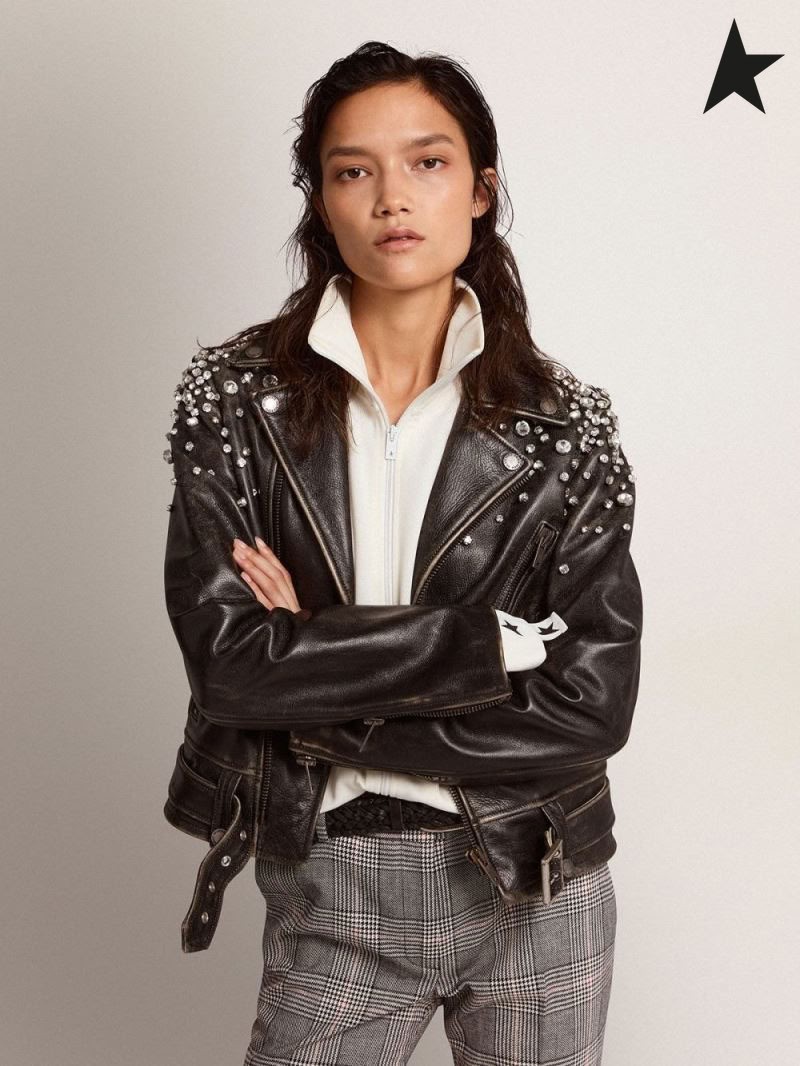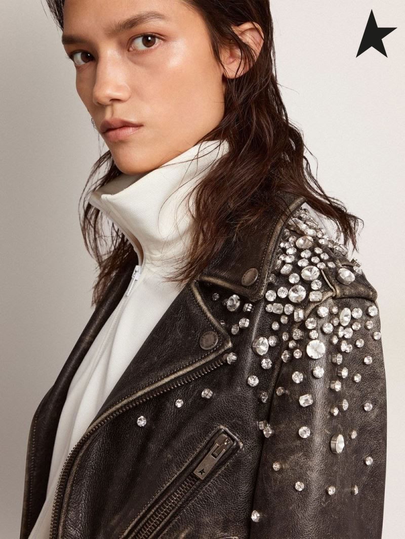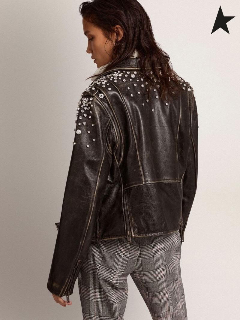 Golden Goose δερμάτινα biker μπουφάν με μαύρα κρύσταλλα