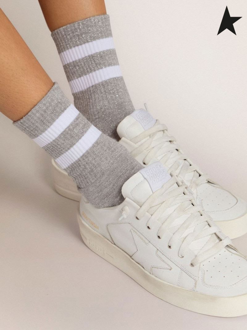Golden Goose Γκρι κάλτσες με lurex με ραβδώσεις ύφανση, αντιπαραβαλλόμενα λωρίδες και γκρι λογότυπο