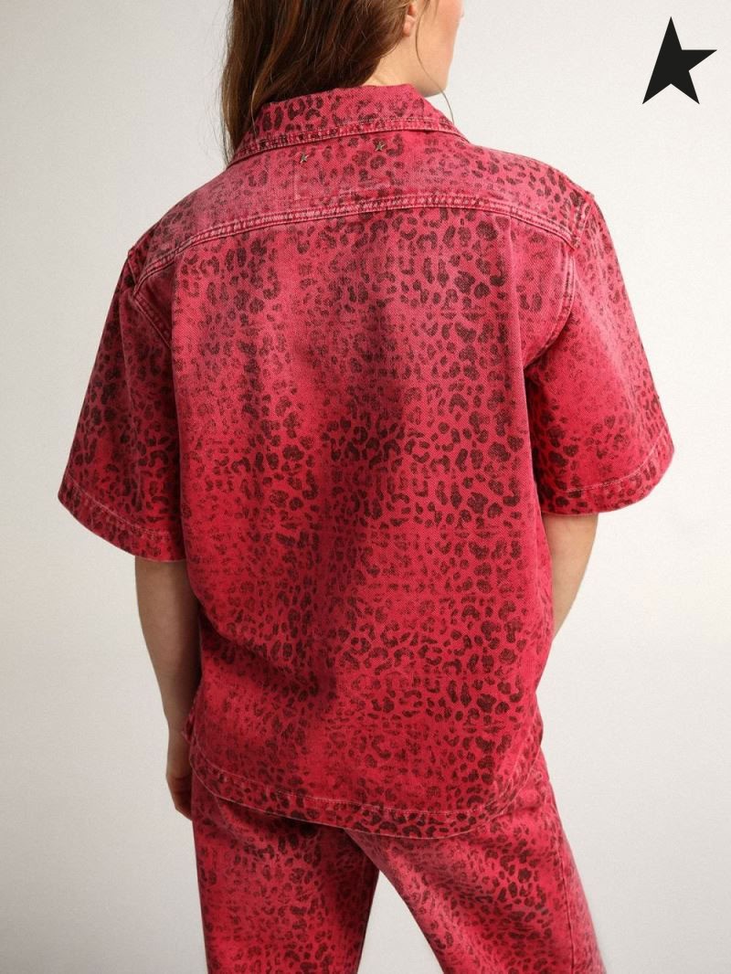 Golden Goose Azalea-colored Journey collection denim shirt with black leopard print pink black