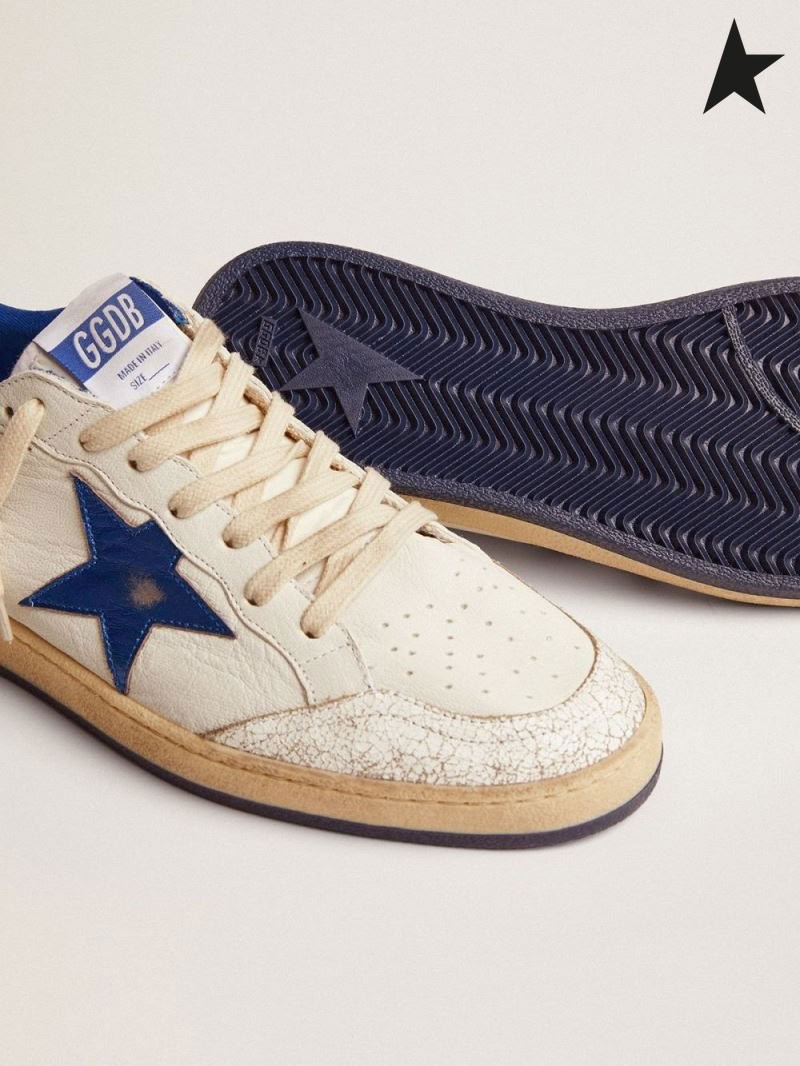 Golden Goose Ball Star sneakers in white nappa leather with light blue laminated leather star and heel tab white light blue