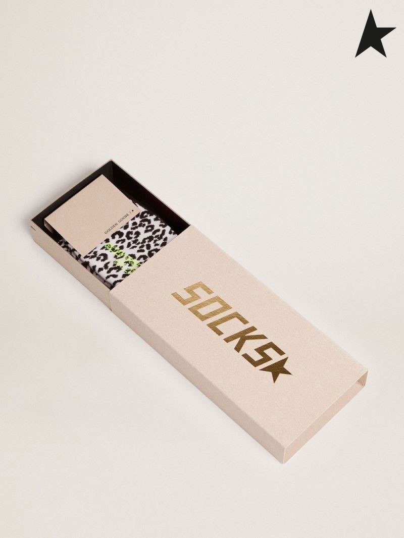 Golden Goose Black and white socks with leopard print and black star on the back Black white