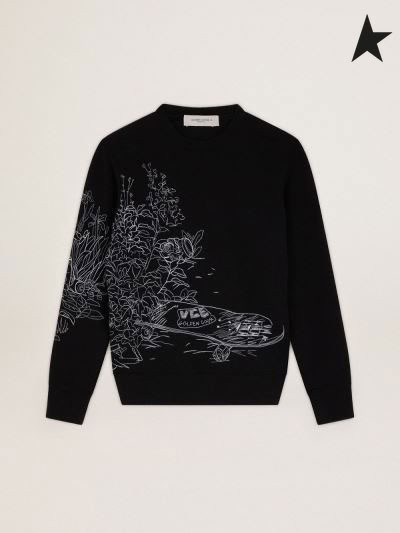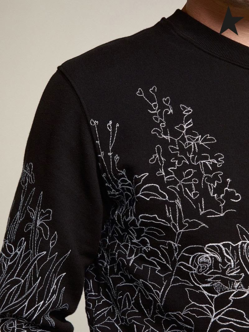 Golden Goose Black Journey collection Archibald sweatshirt with contrasting white embroidery black